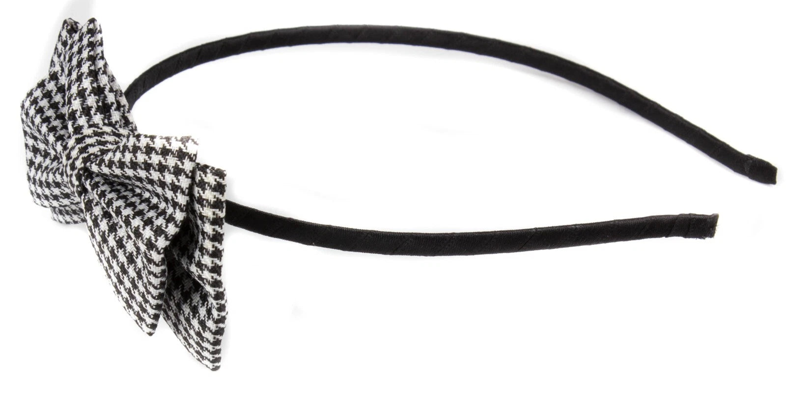 Classic Houndstooth Tweed Bow Headband: Skinny Metal Alice Hair Band