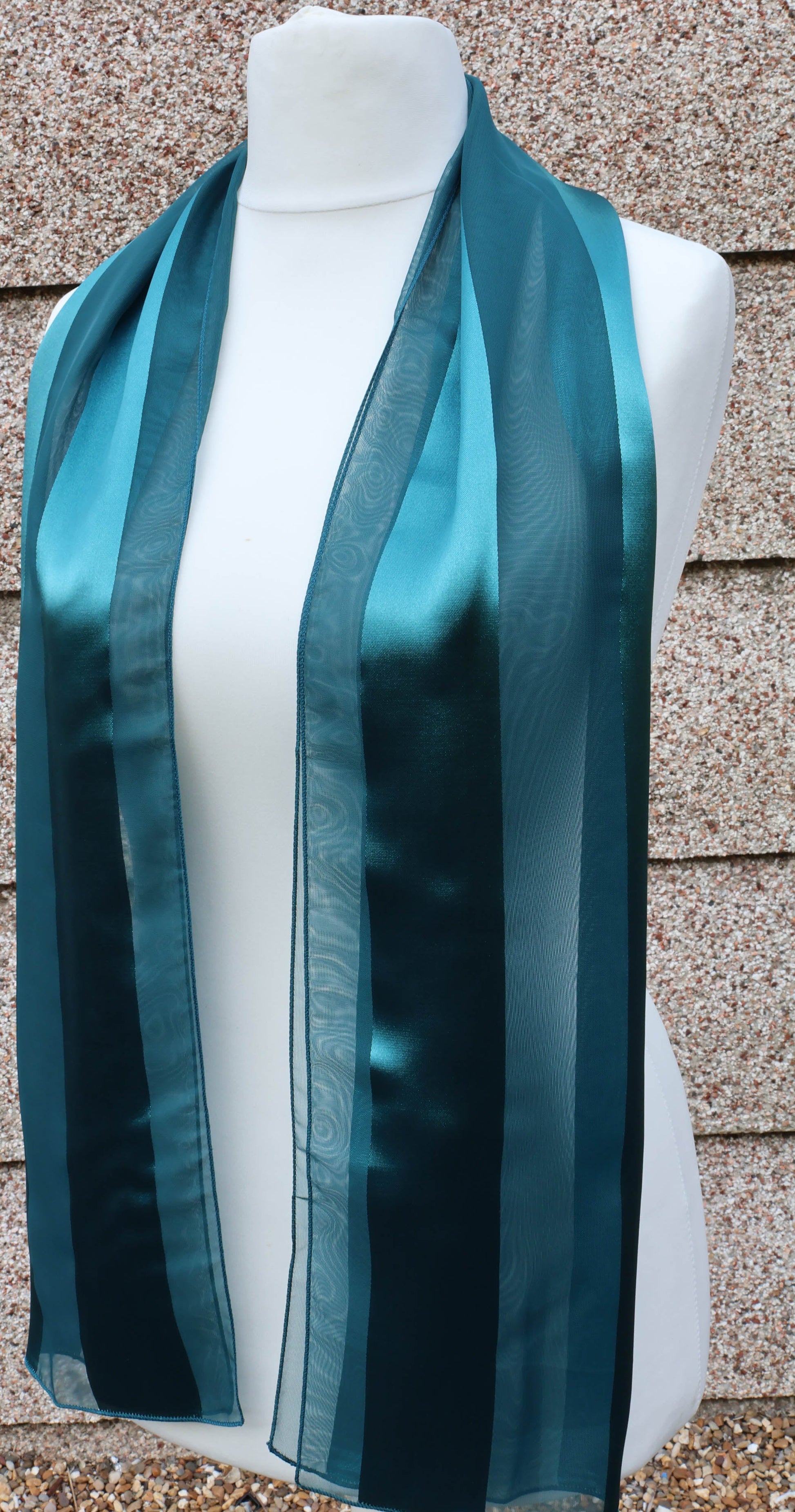 This luxurious soft silky plain long satin striped neck wrap with shiney panels.