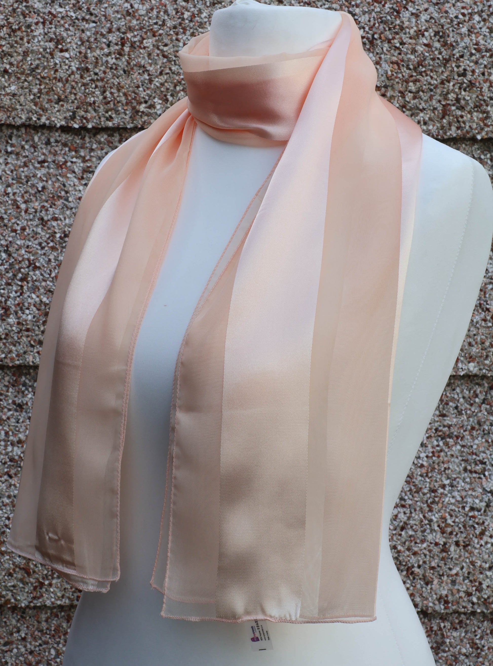 This alluring sheer satin stripe scarf is simple and lightweight and can be wore on neck and head.