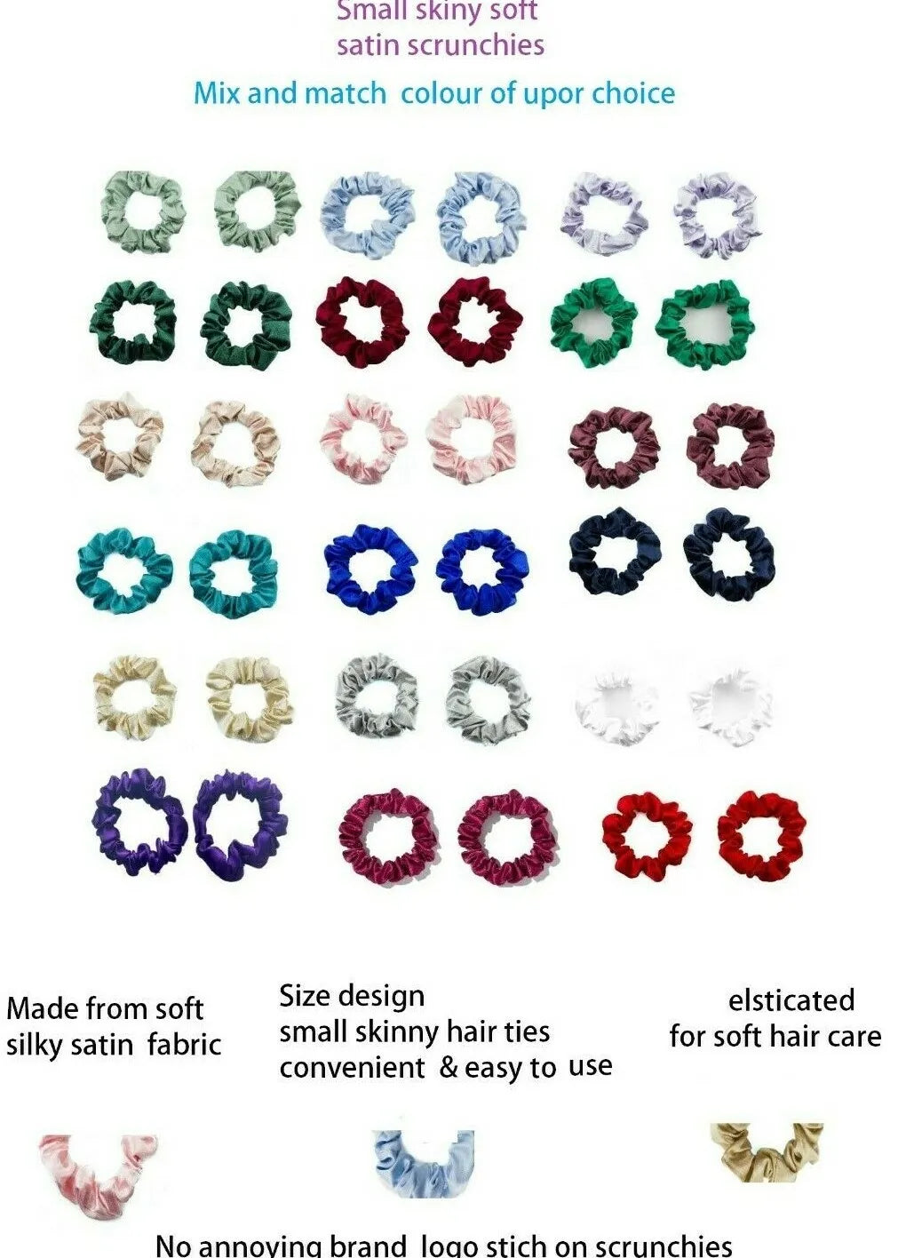 Elevate your hair game with these versatile Satin Scrunchies! This set of two small skinny hair ties are perfect for all hair types and can be used for a variety of occasions, including travel, activewear, weddings, parties, casual outings, christenings, formal events, workwear or business meetings. These are made of high-quality elastic and silky feel satin polyester or silk feel satin, ensuring that your hair stays secure and smooth all day long. By Mytoptrendz collection, these Satin Hair Scrunchie 80's 90's hair accessories will add a touch of charm to any outfit. The scrunchies feature plain, solid accents and are perfect for women, teen girls or even unisex wear. These elasticated and smooth silky feel satin scrunchies are the perfect accessory for any fashionable hairdo.